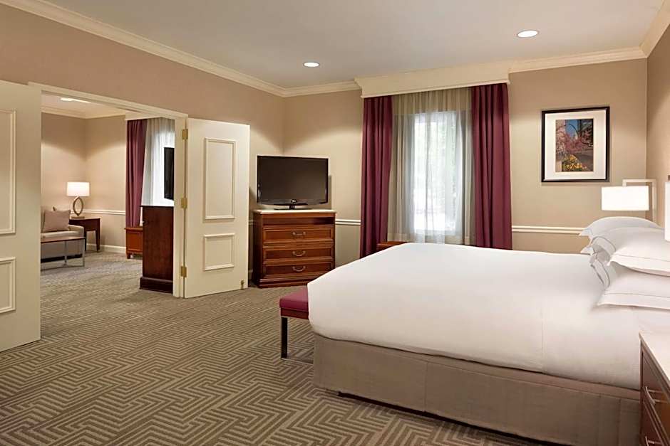 This suite includes a separate sitting area, including a sofa bed and a 65-inch-HDTV.